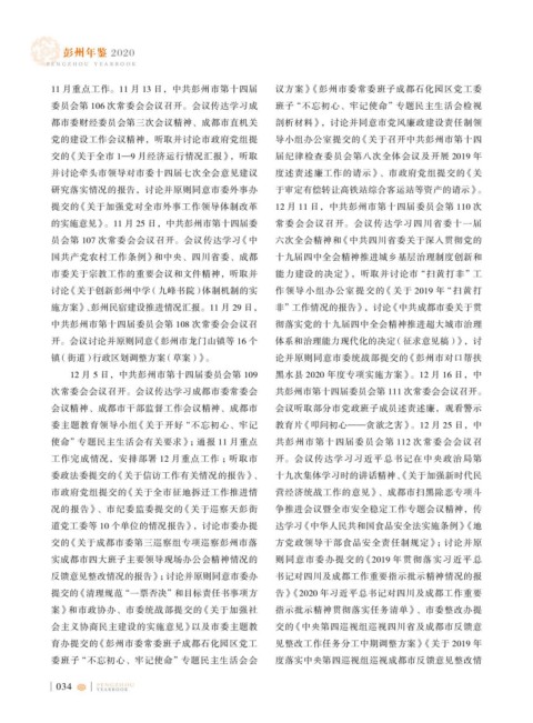 的实施意见》。11 月 25 日,中共彭州市第十四届委 常委会会议召开。会议传达学习四川省委十一届