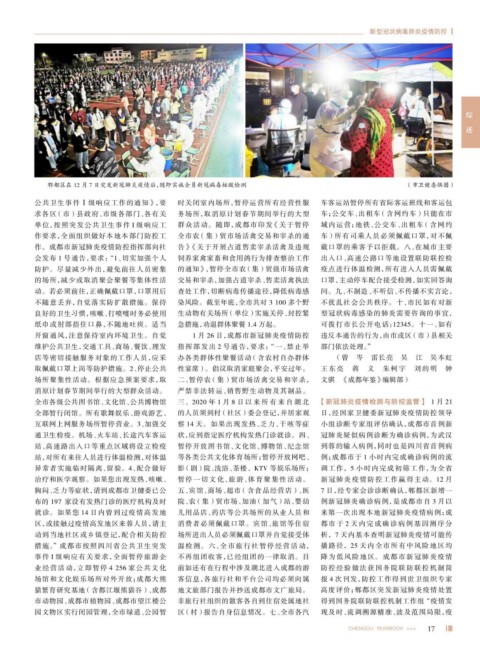 单位,按照突发公共卫生事件 I 级响应工 群众活动。随即,成都市印发 《关于暂停 域内运营;地铁、公交车、出租车 (含网约