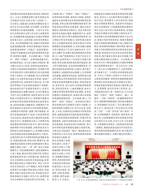 加快建设高质量发展增长极和动力源的决 会强调,融入 “双循环”、唱好 “双城记”, 构建驱动公园城市高质量发展的要素适配