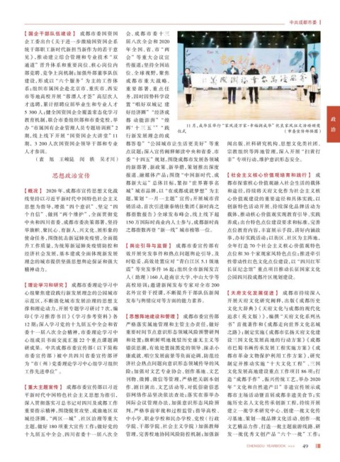 【概况】 2020 年,成都市宣传思想文化战 城”城市品牌,以 “在成都成就梦想”为主 和途径,持续将天府文化作为社会主义核