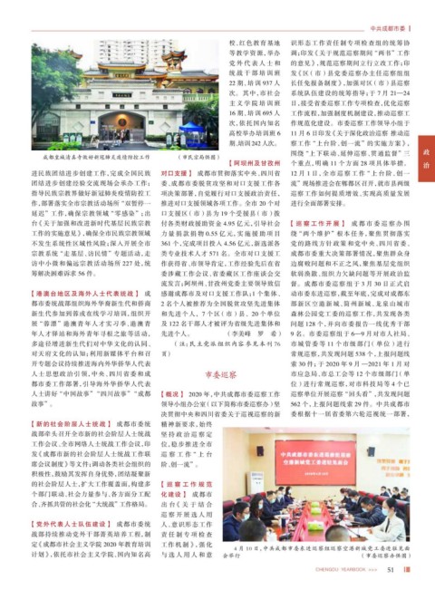 人士讲好 “中国故事” “四川故事” “成都 【概况】 2020 年,中共成都市委巡察工作 巡察单位开展巡察 “回头看”,共发现问题