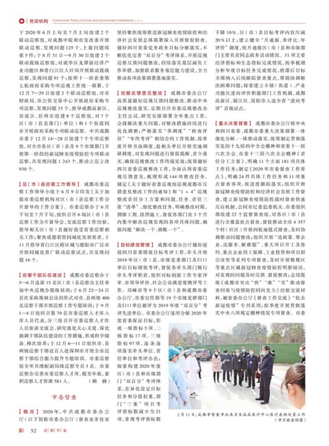 项巡察,发现问题 33 个,指导成都高新区、 巡视整改落实,定期召开市委巡视整改办 评”首批试点。