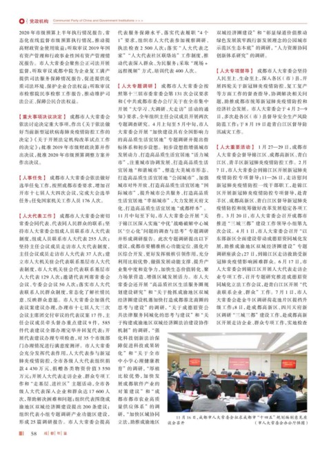 【人事任免】 成都市人大常委会依法做好 打造高品质生活宜居地 “公园城市”,加强 疫情防控专项督导;11—26 日,走访慰问