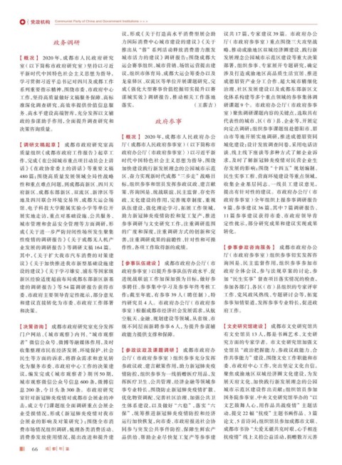 【概况】 2020 年,成都市人民政府研究 城市活力的建议》调研报告;围绕成都大 发展理念公园城市示范区建设等重大决策