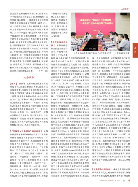 【概况】 2020 年,成都市政务服务工作按 一推行 “红、黄、绿”三色健康码,对接国 信息等功能,不断提升功能体验;加强平台