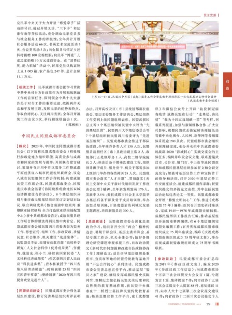 【概况】 2020 年,中国民主同盟成都市委 伍建设,全年推荐各类人才 130 人次,民盟 开展理研交流,承办并承担中共成都市委