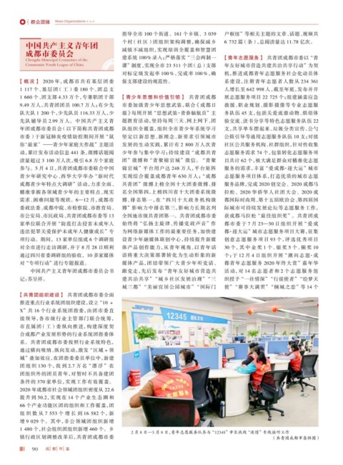 【概况】 2020 年,成都市共有基层团委 保支部建设的规范性。 系建设,注册青年志愿者人数从 234 361