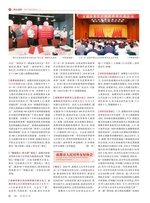 家”,覆盖 98 个国家和地区;推动基层组 【概况】 2020 年,成都市人民对外友好协 品,其中 4 件作品分获二等奖和优秀奖。