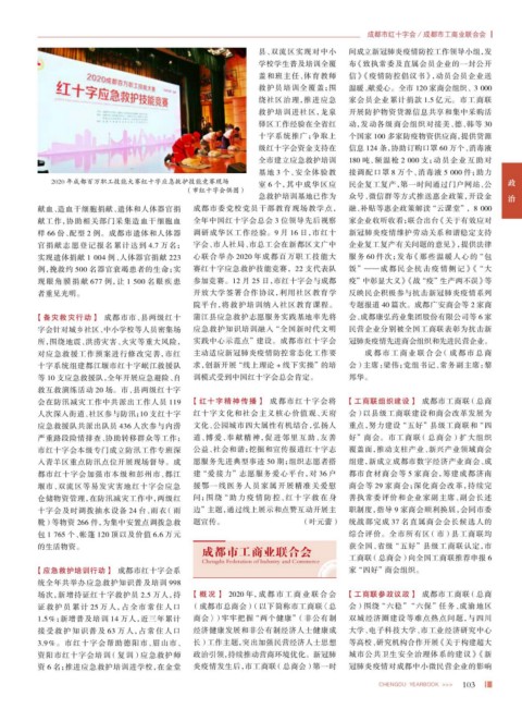 场次,新增持证红十字救护员 2.5 万人,持 【概况】 2020 年,成都市工商业联合会 【工商联参政议政】 成都市工商联 (总商