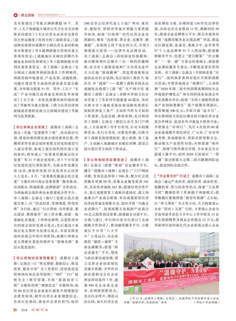 功能区建设等方面组织政协委员建言献 民生 齐 “战疫”——成都工商联系统众志 介活动;开展异地商会 “成都行”,主动协