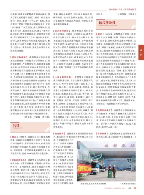 段信息化、物资管理模块化、营院管理智能 征兵进校园、进村社、进家庭活动,调查在 【概况】 2020 年,成都警备区贯彻上级党