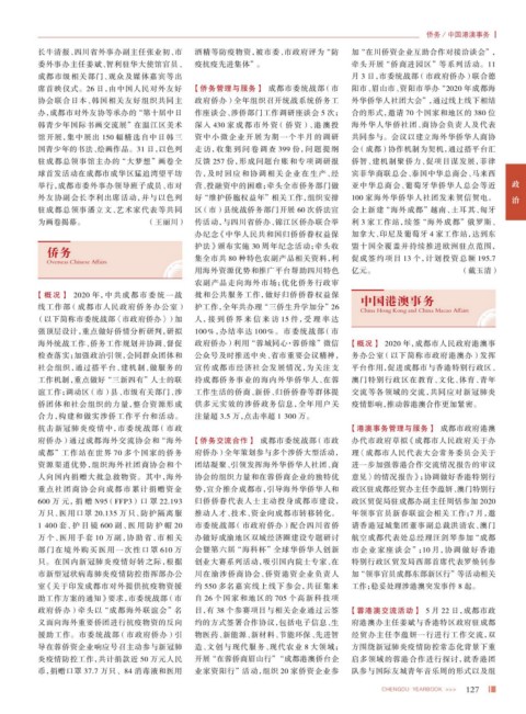 【概况】 2020 年,中共成都市委统一战 批和公共服务工作,做好归侨侨眷权益保 中国港澳事务