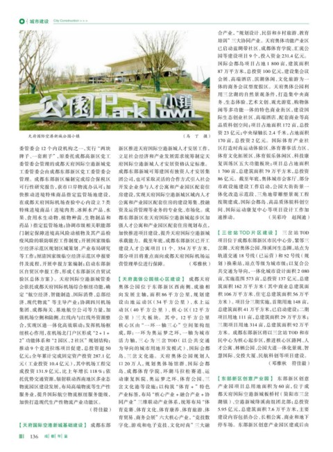 【天府国际空港新城基础建设】 成都东部 字化、游戏和电子竞技、文化时尚”三大融 停车场。东部新区创意产业园区建成后由