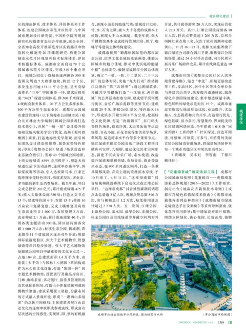 100 平方公里生态农业区。成都市公园城 绿道 25 千米,串接公园、景区、特色街区 16 过实施出行绿道形态优化、业态提升、文态 城建环保