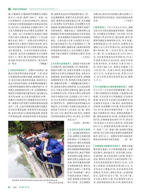 都市生物多样性调查及监测”工作,组织 成都市水生野生动物保护基地,开展水生 167.7 公 斤,行 政 处 罚 53 起,罚 款 13 415