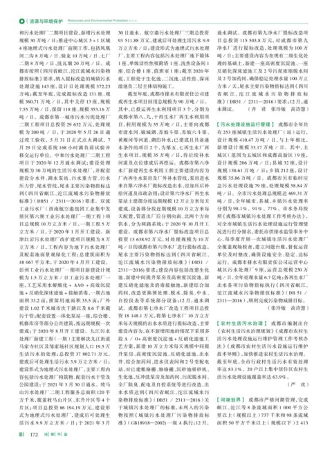 万吨;截至年底,完成提标改造 131 座、规 截至年底,成都市排水有限责任公司建 省岷江、沱江流域水污染物排放标