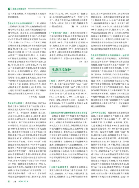 个区域同步实施重大病害治理。病害治理 【概况】 2020 年,成都市生态环境局实施 商会 12 次;自主研发成都平原经济区中长