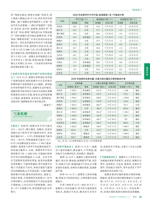 【概况】 2020 年,成都市年平均气温为 双流区 1 024.2 略偏多 156.4 b 8月11日 1 649.7 偏多