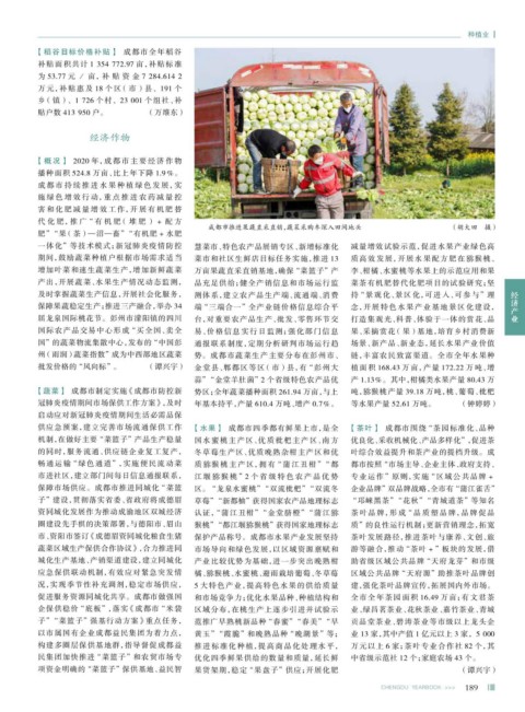 【蔬菜】 成都市制定实施 《成都市防控新 势区;全年蔬菜播种面积 261.94 万亩,与上 吨,猕猴桃产量 39.18 万吨,桃、葡萄、枇杷
