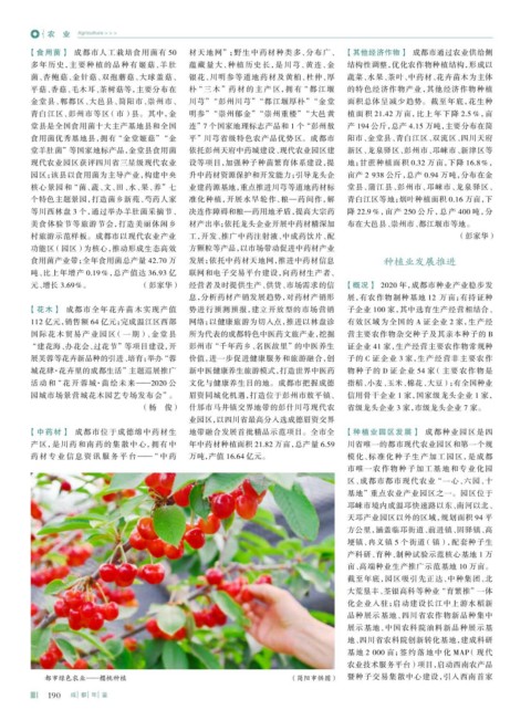 【中药材】 成都市位于成德绵中药材生 地带融合发展首批精品示范项目。全市全 【种植业园区发展】 成都种业园区是四