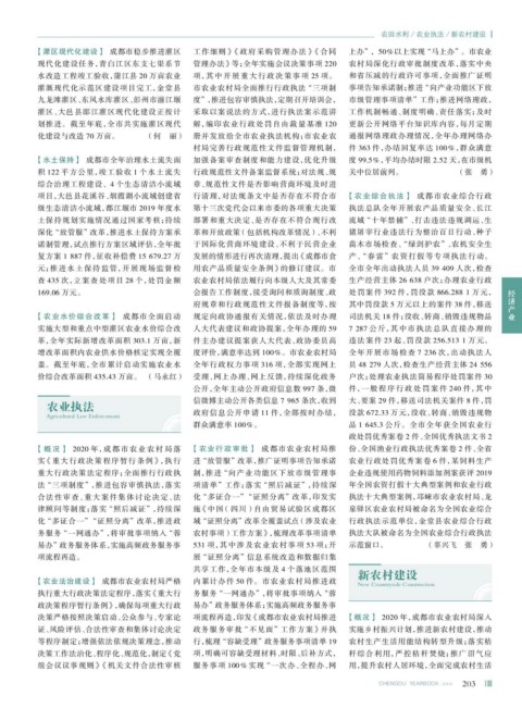 决策严格按照决策启动、公众参与、专家论 项流程再造,印发 《成都市农业农村局推进 【概况】 2020 年,成都市农业农村局深入