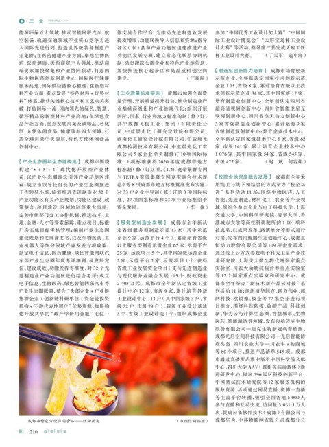 品产业方面,重点发展川菜及调味品、名优 其中 成都飞机 工业 (集 团)有限 责任公 3 家省级制造业创新中心,累计培育 9 家