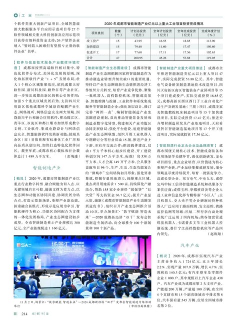 【概况】 2020 年,成都市智能制造产业以 集成,挖掘存量用地潜力,保障重点区域、 高成长型企业。东方电气、中电九天、成焊