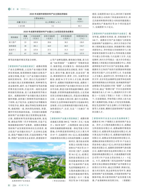 2020 年成都市新型材料产业主要经济指标 建设,完成投资 60.5 亿元;四川四丁新材料