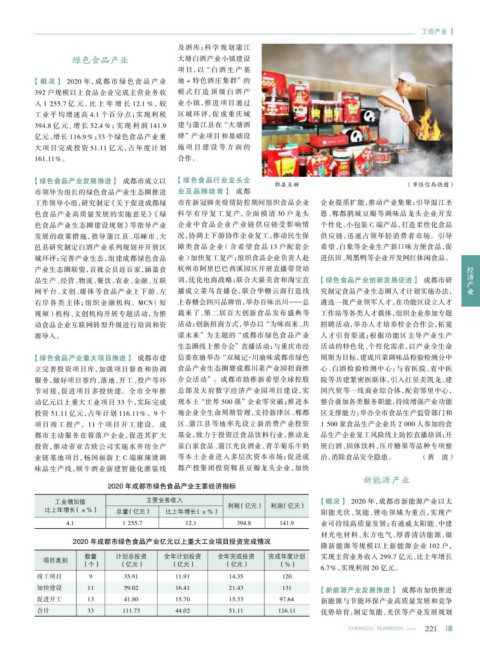 【概况】 2020 年,成都市绿色食品产业 地+特色酒庄集群”的