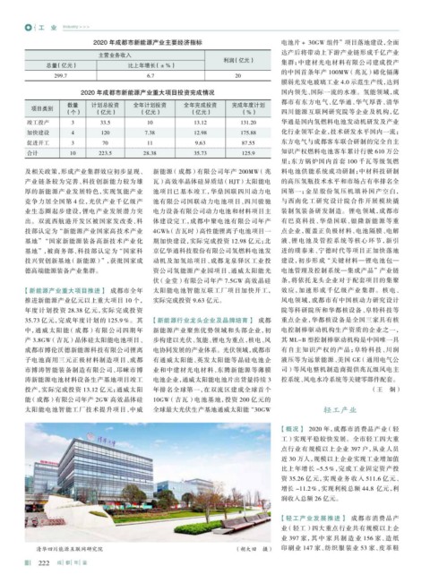 2020 年成都市新能源产业重大项目投资完成情况 国内领先、国际一流的水准。氢能领域,成