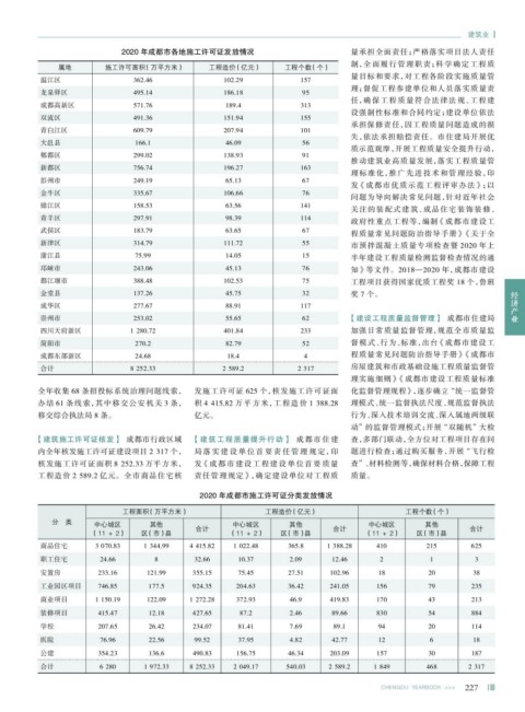 核发施工许可证面积 8 252.33 万平方米, 发 《成都市建设工程建设单位首要质量 查”、材料检测等,确保材料合格,保障工程