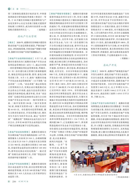 区 (市)县住建行政主管部门各级职能职 规范、有序交付。全市全年检查交付现场 【概况】 2020 年,成都市严格规范房地产