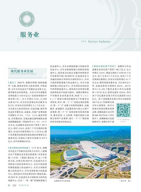 【概况】 2020 年,成都市围绕“创新提能 全球资源配置能力的金融中心、具有全球 百分点;租赁和商务服务业、卫生和社会工