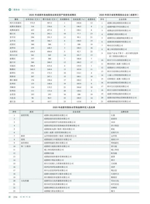 2020 年成都市各地服务业固定资产投资完成情况 2020 年四川省优秀服务业企业 (成都市)