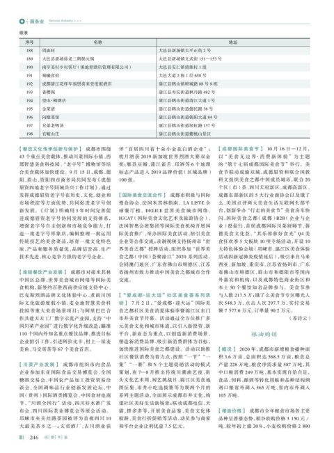 美鱼、马交哥茶等 67 个美食首店。 加快推进国际美食之都建设。活动以助推 【概况】 2020 年,成都市新增粮食播种面