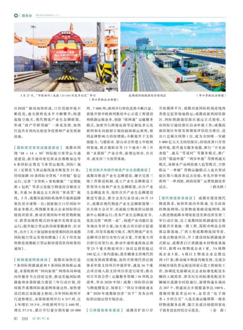 区四园”格局加快形成,口岸营商环境不 列、7 000 列;班列开行特色优势不断凸显, 开放载体平台,成都双流国际机场进境肉