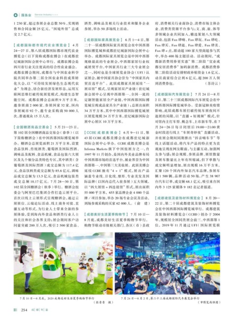 7 月 10 日—8 月底,2020 成都美好生活夏季购物节举行 7 月 24 日—8 月 2 日,第二十三届成都国际汽车展览会举行