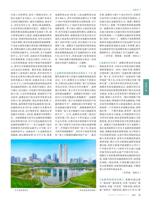 心、市民生活中心为一体的立体金融枢纽, 金融科技中心于 2020 年获评省级科技企 开发中心 (成都)等功能性机构落地成都