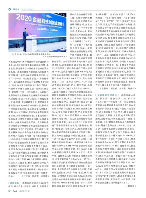 组织承办 2020 金融科技创新 (成都)峰 35.5 亿元信用贷款支持,为 3 168 户小微 国有控股融资担保公司注册资本金倍增