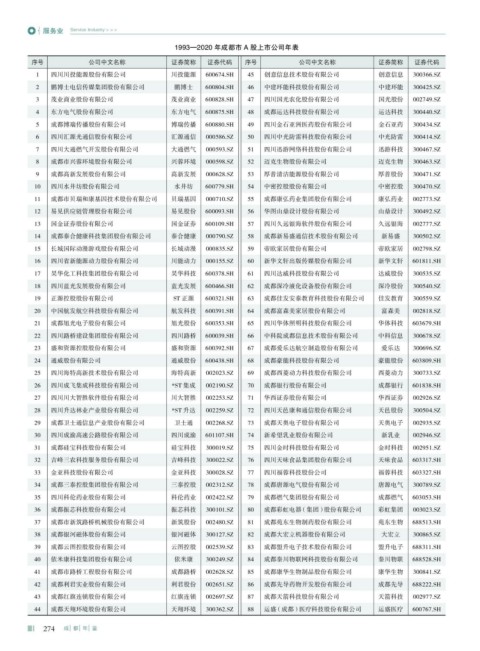 1993—2020 年成都市 A 股上市公司年表