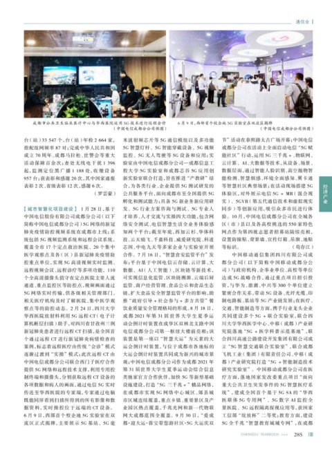 成立 70 周年、成都马拉松、世警会等重大 监控、5G 无人驾驶等 5G 设备和应用;实 能社区”行动,运用 5G 三千兆+、物联网、