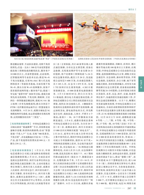 立组网)并率先规模商用;推出全国首个 预案,组织由 20 名抢险人员、4 辆抢险车 突发新冠肺炎疫情,中国电信成都分公司