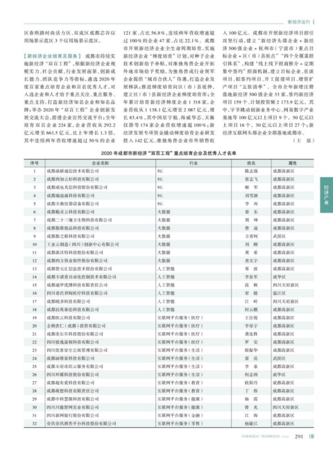 2020 年成都市新经济 “双百工程”重点培育企业及优秀人才名单
