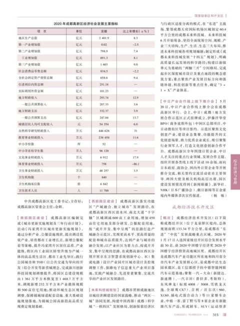 2020 年成都高新区经济社会发展主要指标 与行政区适度分离的模式,在 “东进”主战