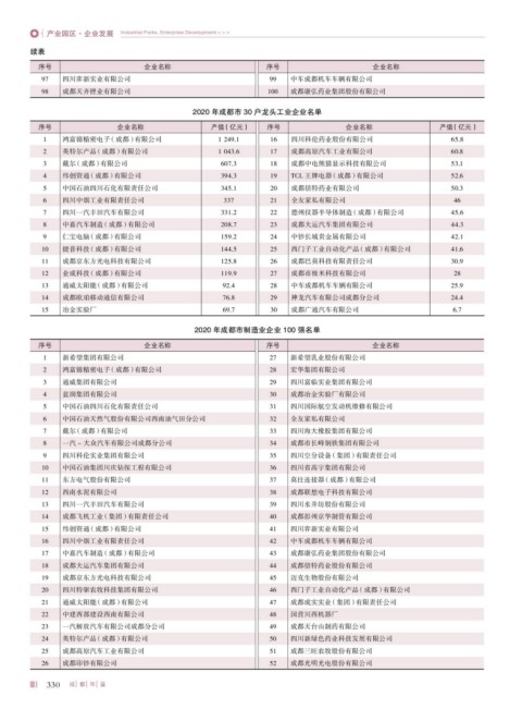 2020 年成都市制造业企业 100 强名单