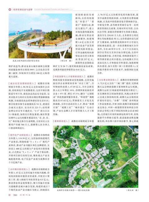 【城乡社区治理财政投入】 成都市市级 新经济企业梯度培育和 “双百工程”,全 入 72.5 亿元支持 “三城三都”建设,完善成