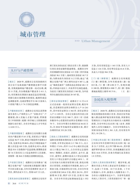 【概况】 2020 年,成都市公安局协助四川 都公安微户政”网上预约办证 9 307 人;通 门 (楼)牌管理,全年共检查街 (路)巷