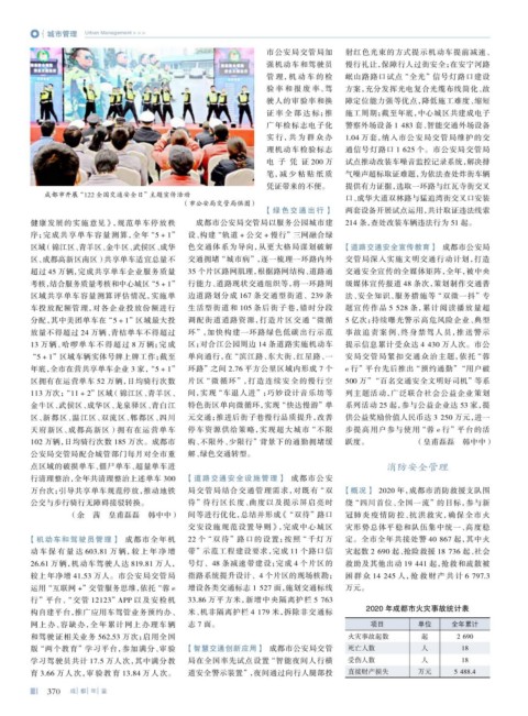 万台次;引导共享单车规范停放,推动地铁 局交管局结合交通管理需求,对既有 “双 【概况】 2020 年,成都市消防救援支队围