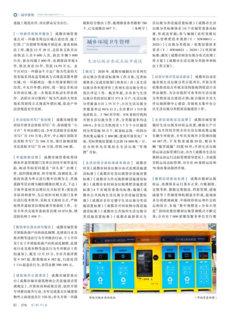 道施工规范有序,市民群众安全出行。 箱柜综合整治工作,梳理排查各类箱柜 786 活垃圾分类设施设置标准》 《成都市生活