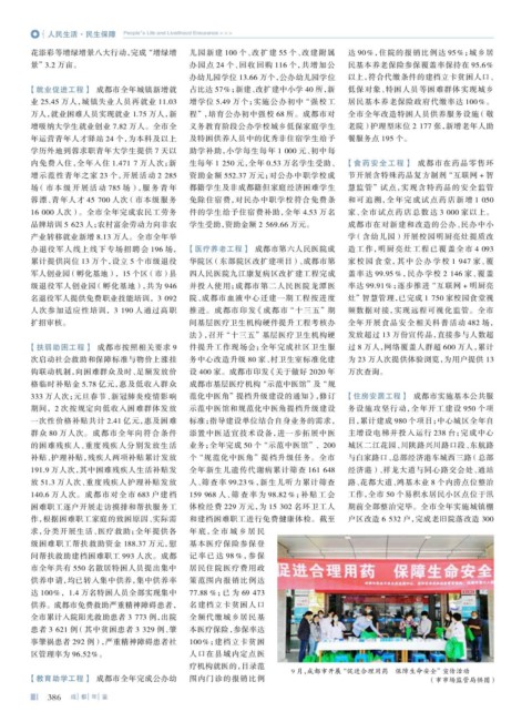 【就业促进工程】 成都市全年城镇新增就 占比达 57%;新建、改扩建中小学 40 所,新 低保对象、特困人员等困难群体实现城乡